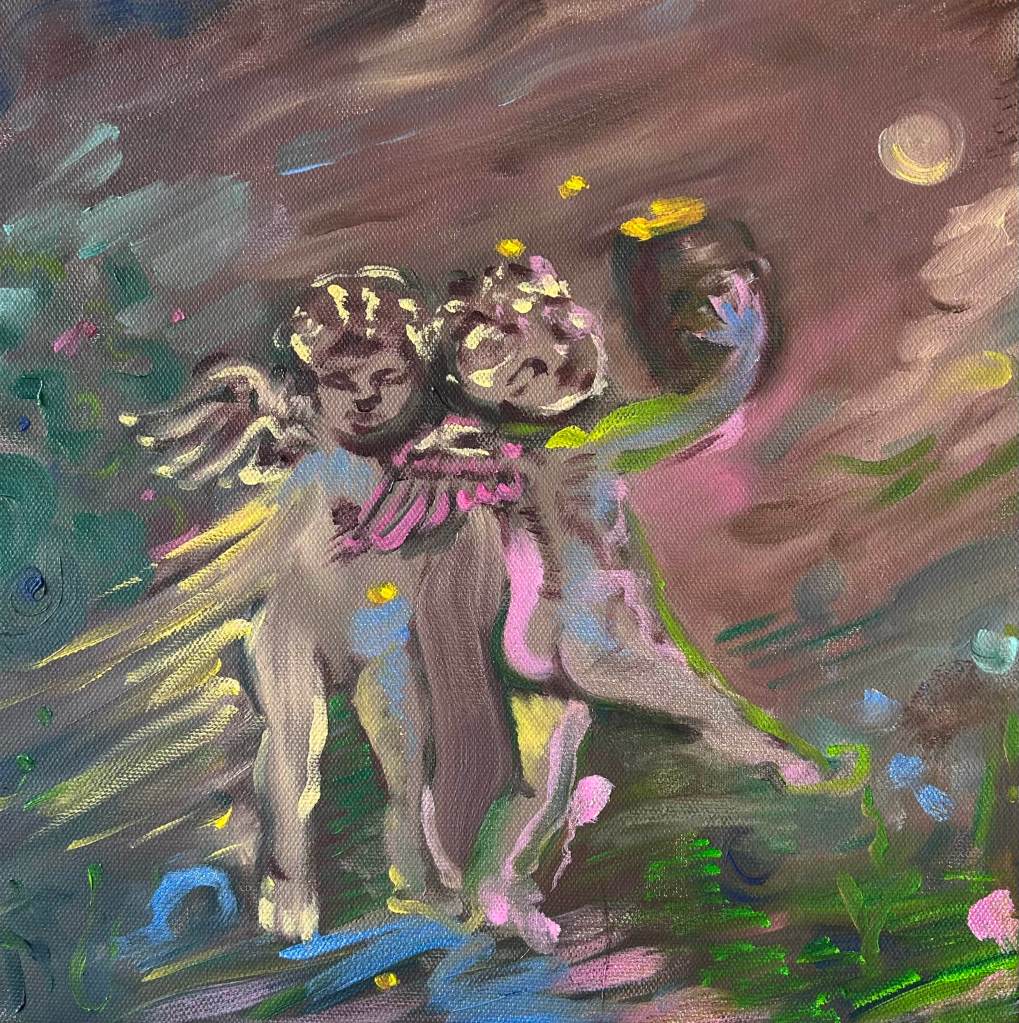 Rich kids, am I right? (2023, 12×12″, oil on canvas)