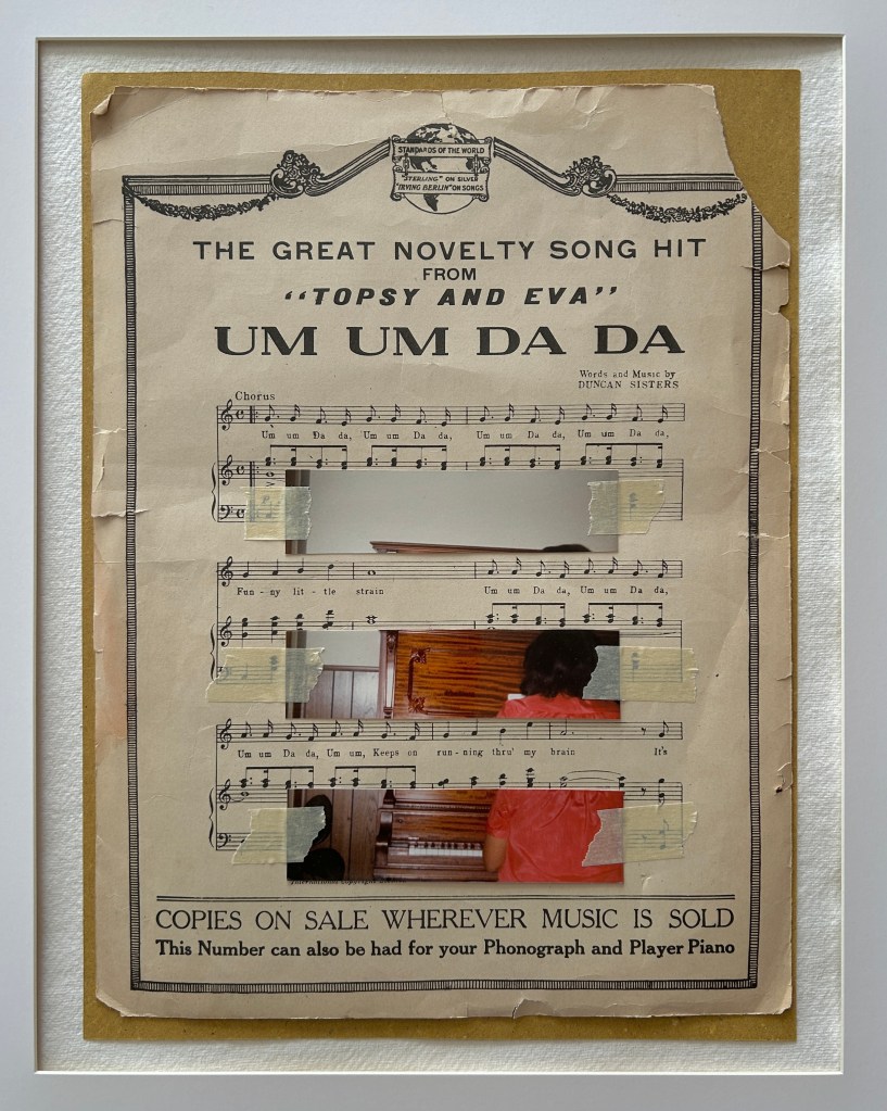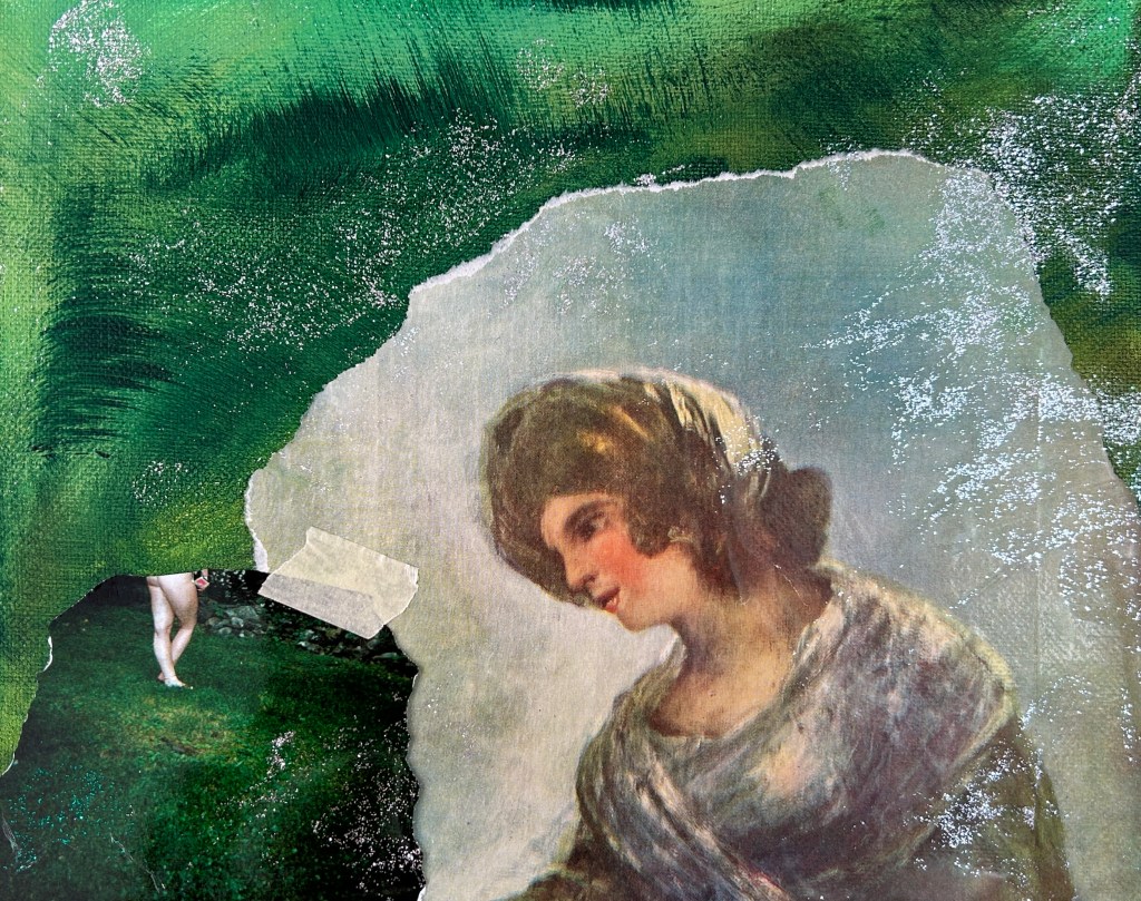 Fantasia, oil on canvas, 24×20″, 2024Lolita, oil on canvas, 12×12″, 2024Um Um Da Da, photo and sheet music, 9×12″, 2024O Sweet Briar, mixed media, 14×11″, 2024A look of longing, mixed media, 8×10″, 2024Evergreen, oil on canvas, 30×36″, 2024I love you tru-ly, oil on canvas, 24×18″, 2024Childhood (unabridged), mixed media, 11×16″, 2024Crocodile Man and Celia Paul, mixed media, 10×16″, 2024Two girls fighting, oil on canvas, 30×36″, 2024Gourmet Love, mixed media on paper, 17×12″, 2024Welcome to Heaven, mixed media on paper, 17×12″, 2024